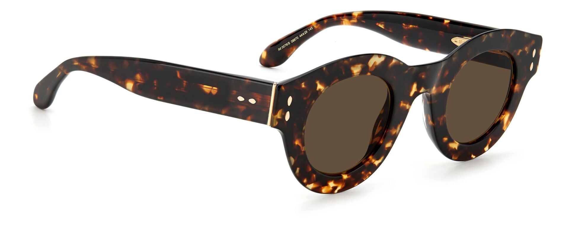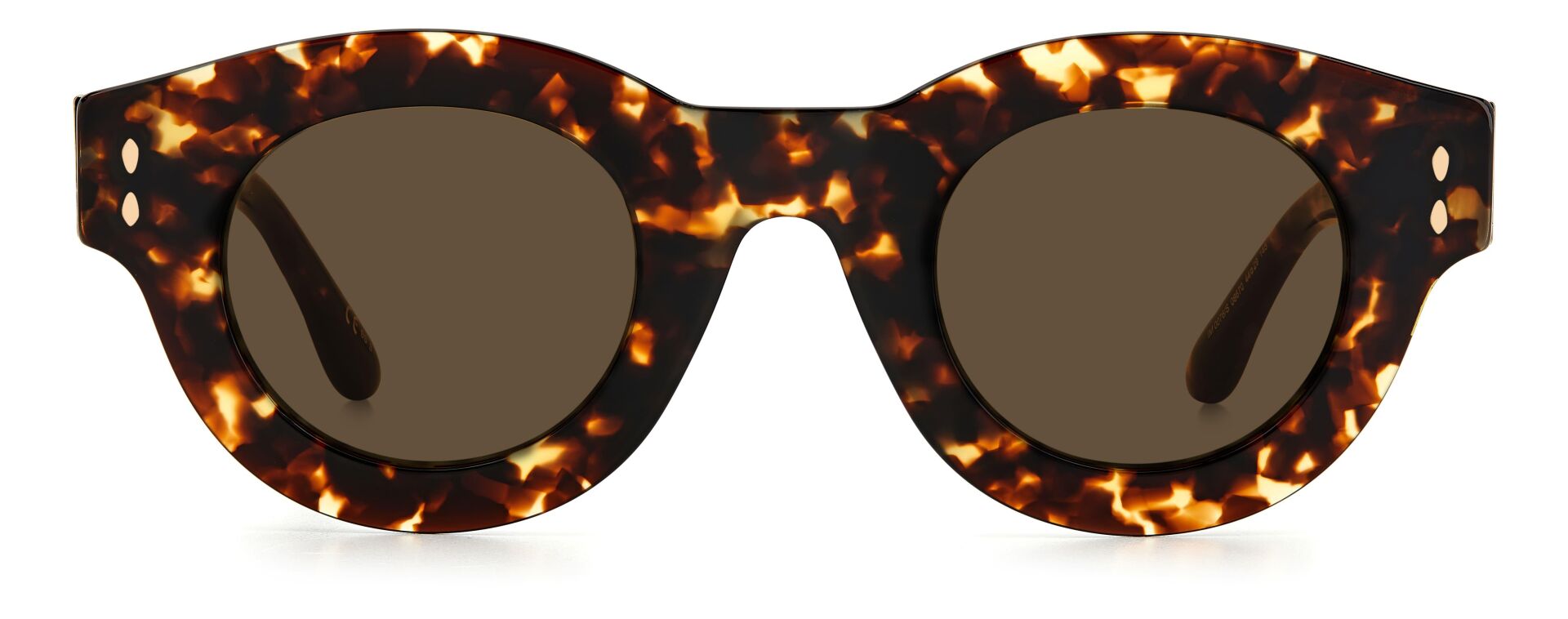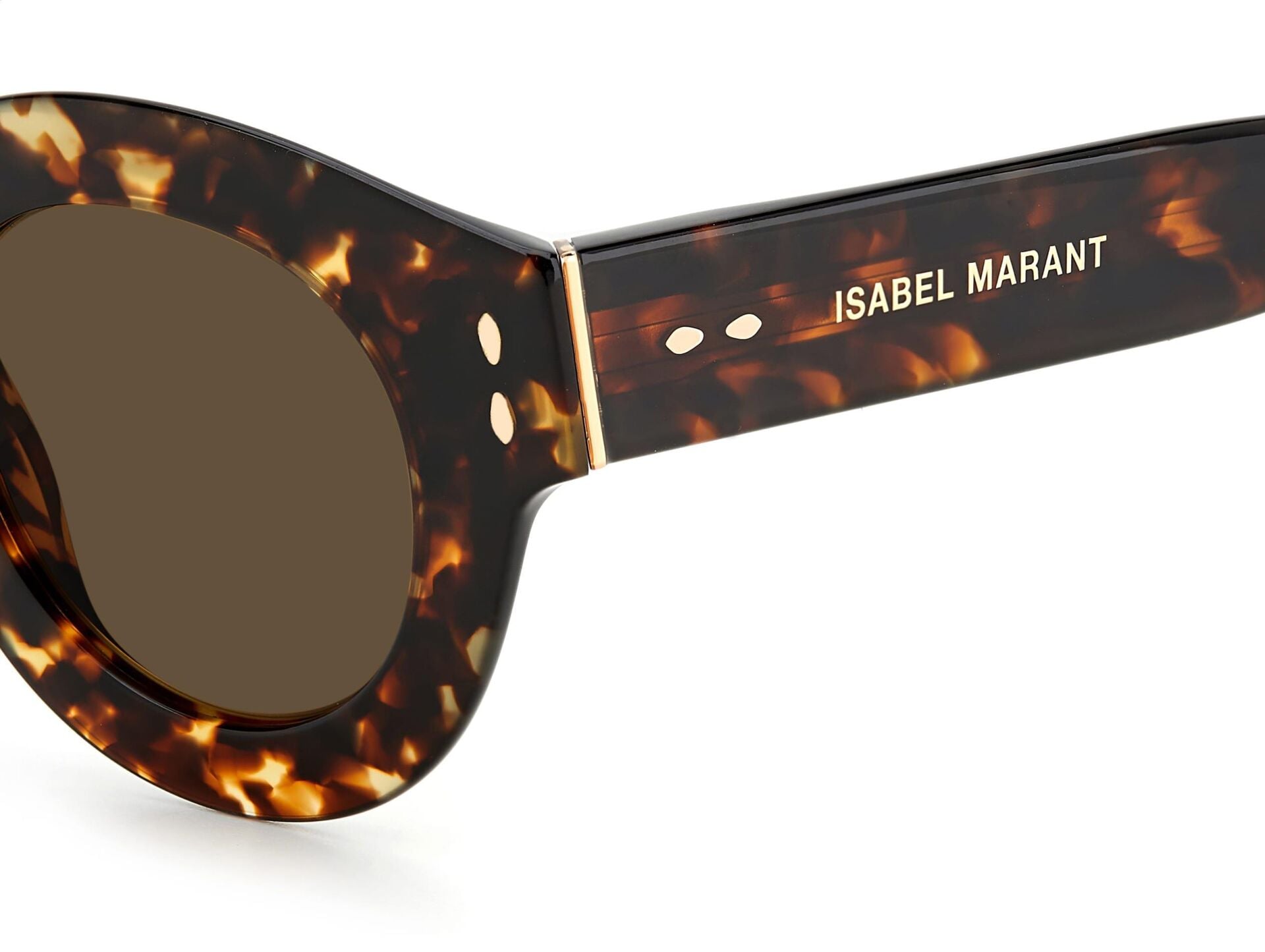 Cesur ve göz alıcı, ancak zahmetsizce hafif: Isabel Marant'ın Yeni gözlük koleksiyonu, markanın RTW serisinden ilham alan feminen renk gruplarını kapsayan bir dizi ultra düz çerçeveden oluşuyor. Şık metal şakak çekirdekli Kemikten üretilen bu güneş gözlüğü, zarif yuvarlak silueti menteşedeki lüks metal vurguyla güncelliyor. Isabel Marant'ın imzalı yaprak detayını kutlamak için şekillendirilmiş sap uçları ve metal perçinlerle geliştirilmiştir.