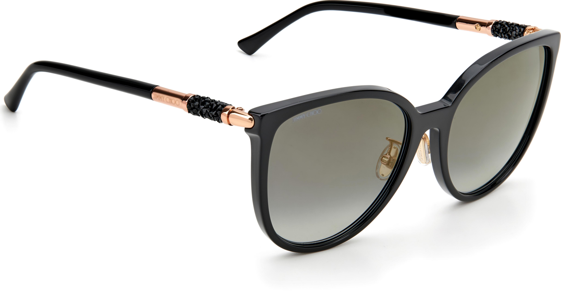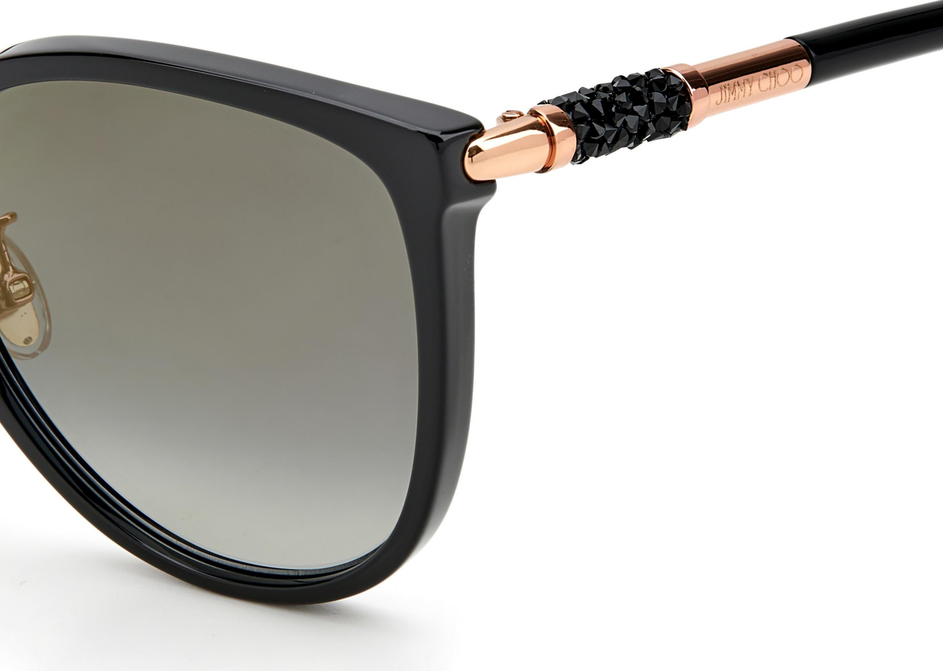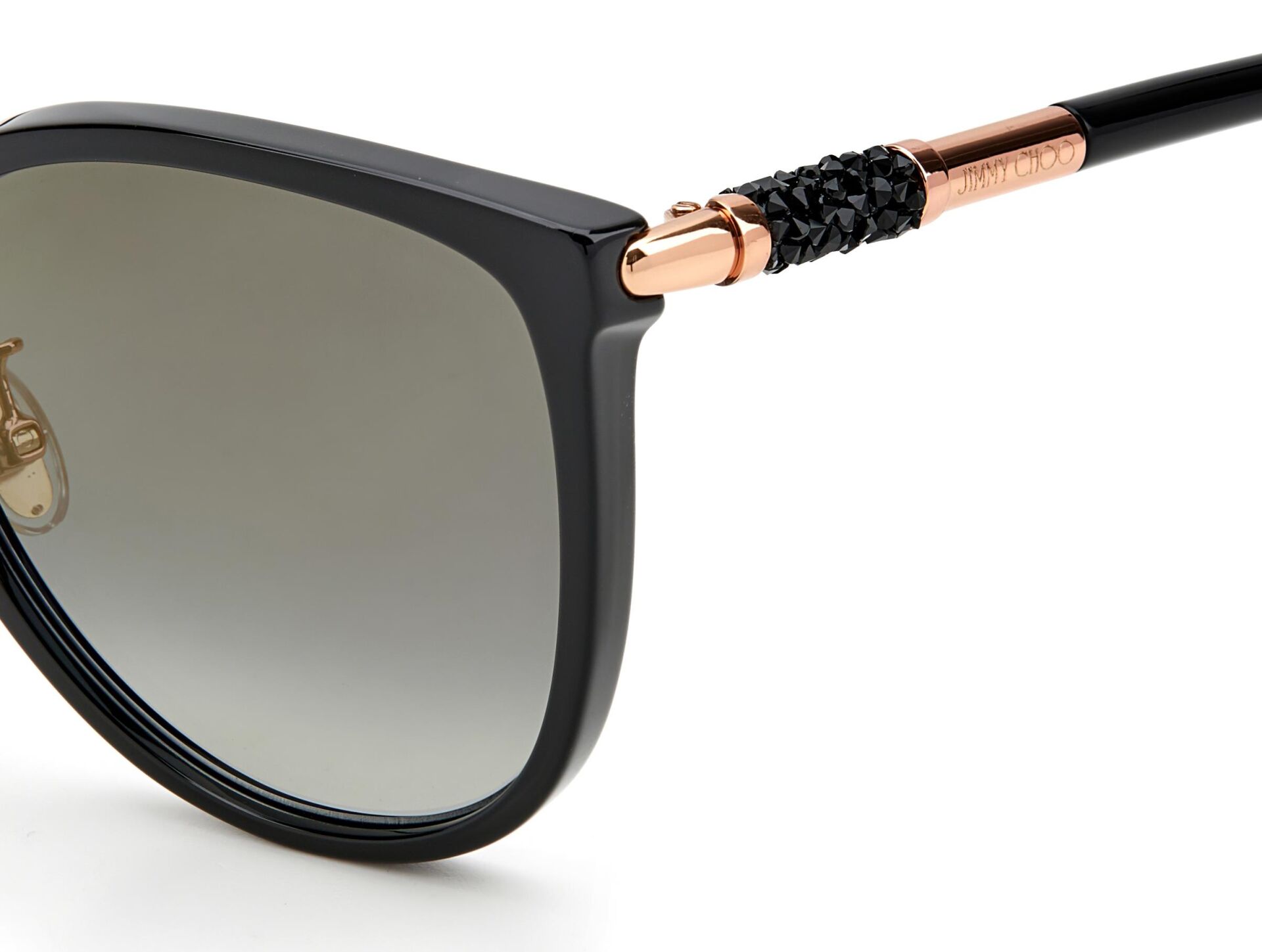 Göz alıcı bir görünüm için Jimmy Choo'nun güneş gözlükleri ışıltılı kristaller enjekte edilmiştir. Orijinal boru şeklindeki kristal kaya detayları, Markanın yenilikçi işçilik ve lüks stil karışımındaki sapları zenginleştiriyor.