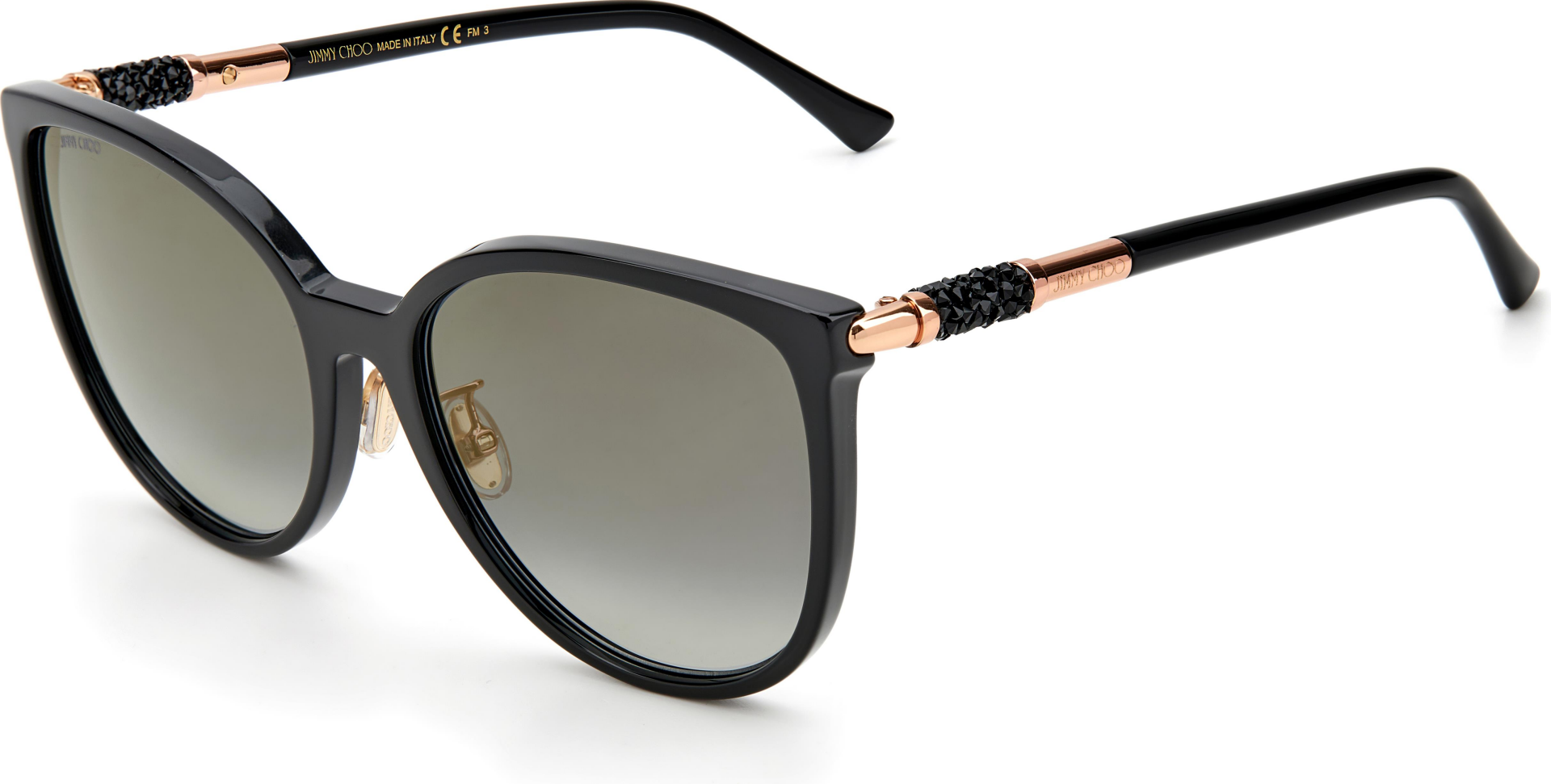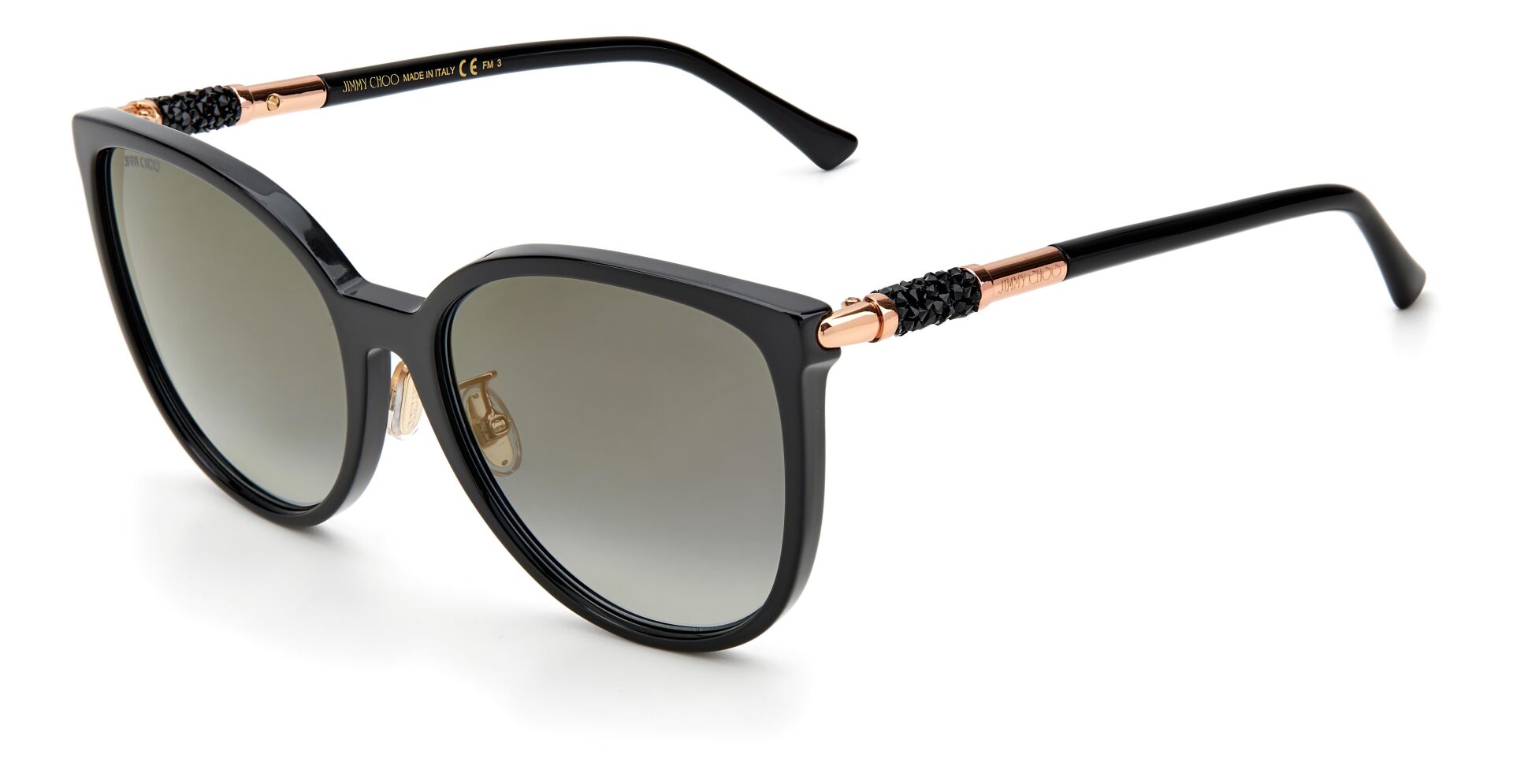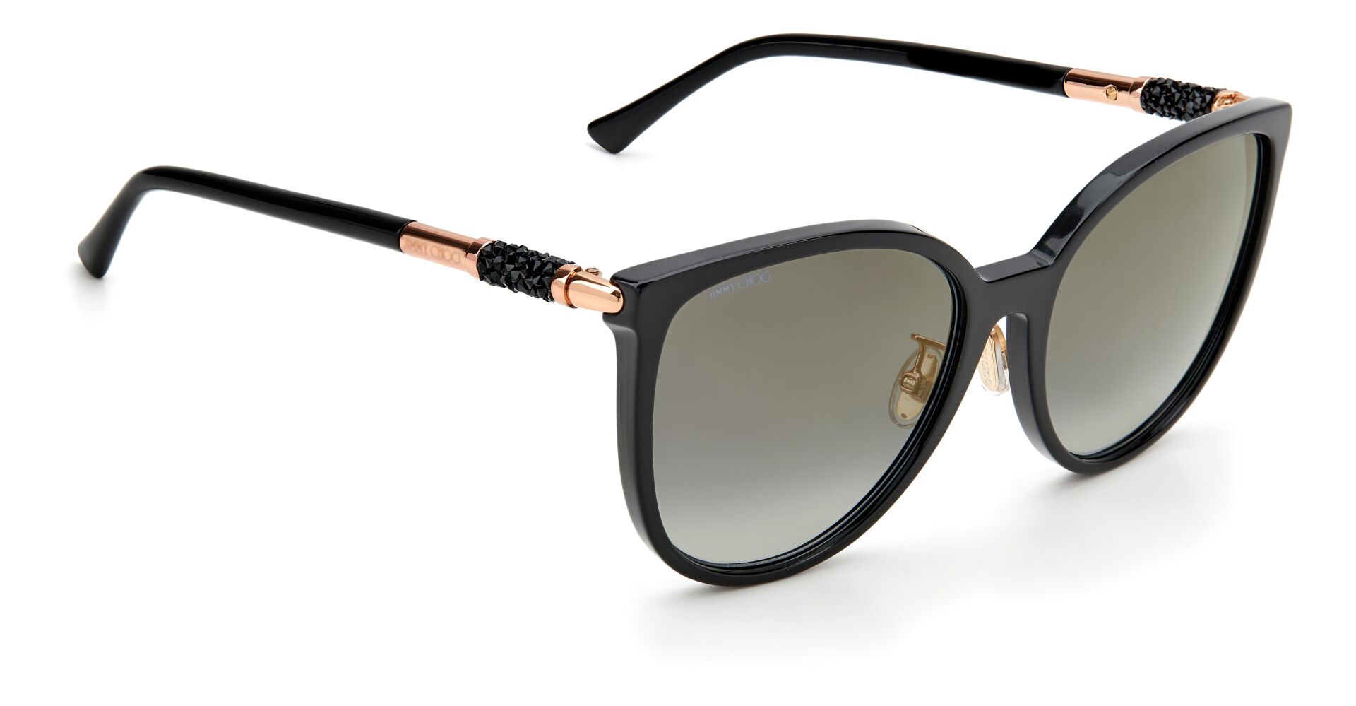 Göz alıcı bir görünüm için Jimmy Choo'nun güneş gözlükleri ışıltılı kristaller enjekte edilmiştir. Orijinal boru şeklindeki kristal kaya detayları, Markanın yenilikçi işçilik ve lüks stil karışımındaki sapları zenginleştiriyor.