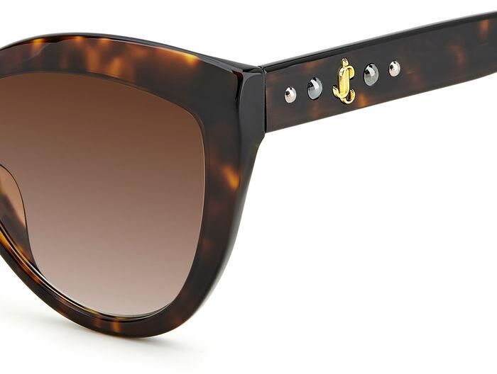 Göz alıcı bir görünüm için Jimmy Choo'nun güneş gözlükleri ışıltılı kristaller enjekte edilmiştir. Orijinal boru şeklindeki kristal kaya detayları, Markanın yenilikçi işçilik ve lüks stil karışımındaki sapları zenginleştiriyor.