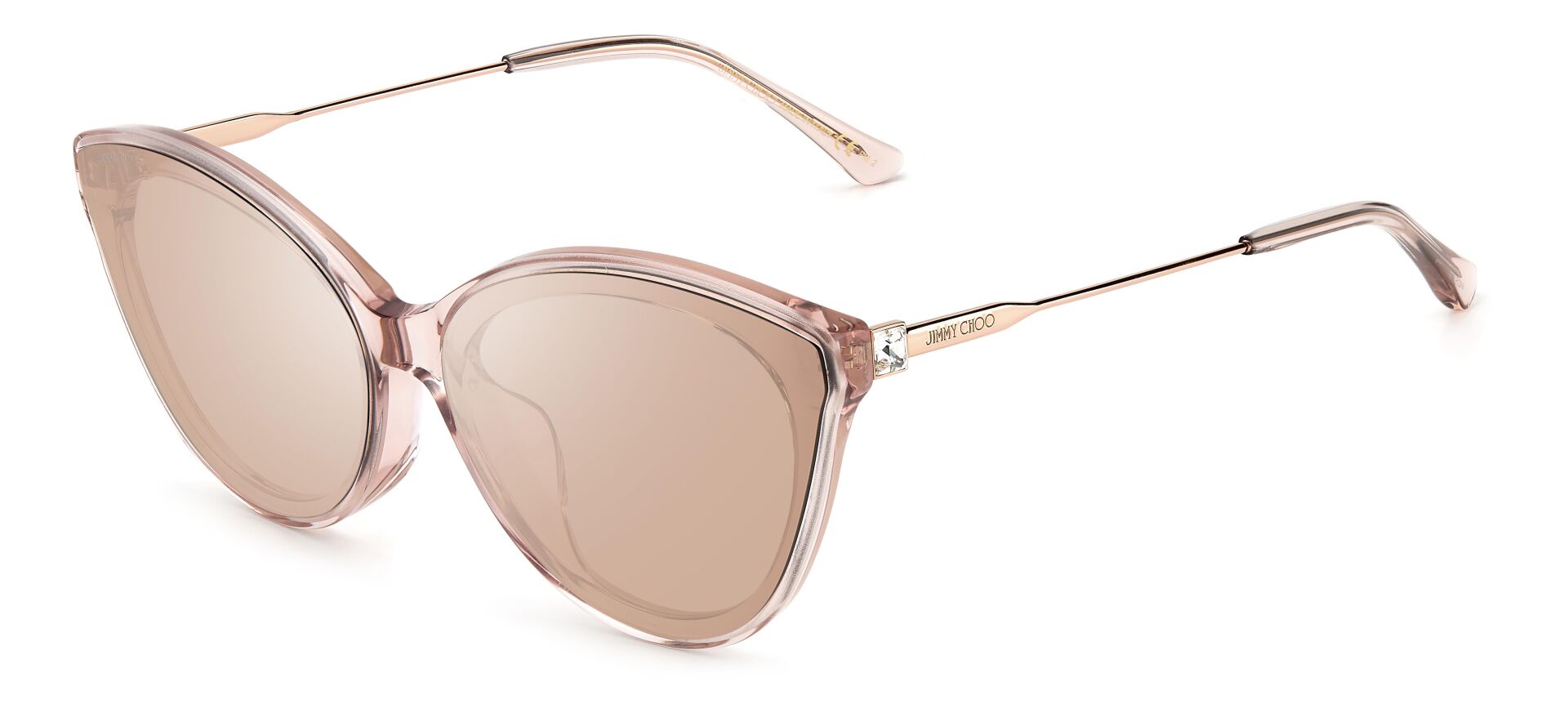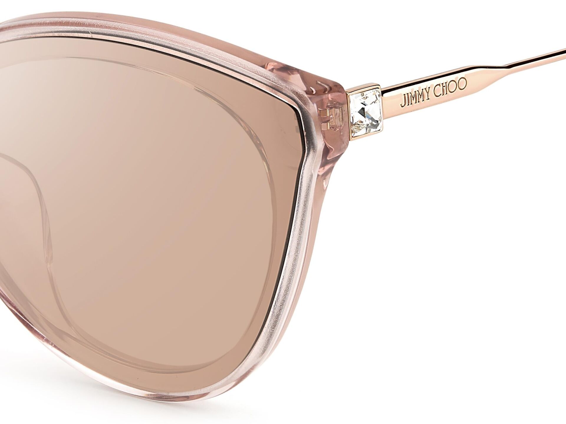 Göz alıcı bir görünüm için Jimmy Choo'nun güneş gözlükleri ışıltılı kristaller enjekte edilmiştir. Orijinal boru şeklindeki kristal kaya detayları, Markanın yenilikçi işçilik ve lüks stil karışımındaki sapları zenginleştiriyor.