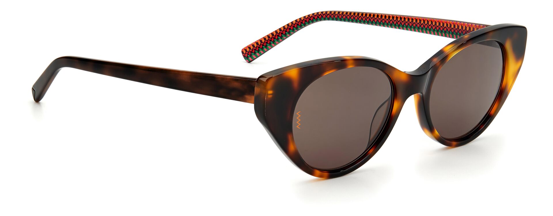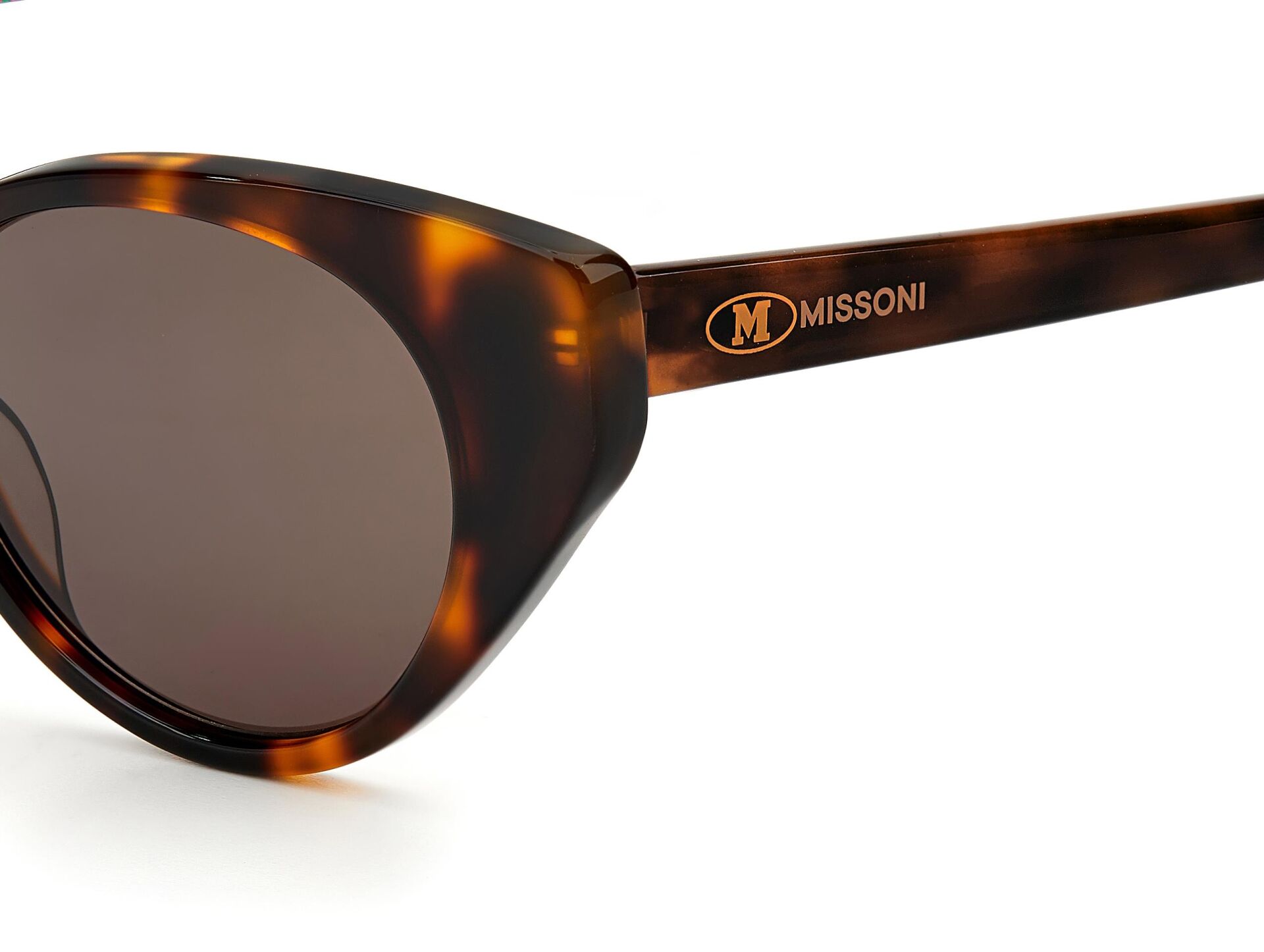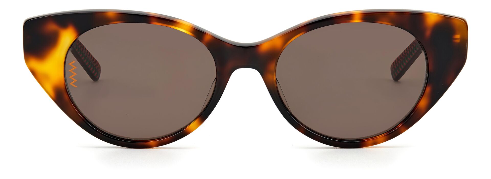 Kusursuz M Missoni tavrıyla renkli ve ayırt edici: Color & Patterns gözlük koleksiyonu, ön veya şakaklarda batik efektli bir dizi opak ve şeffaf asetat çerçeveyi günceller. Cesur kare bir silüetle öne çıkan bu güneş gözlükleri, zikzak metal sap göbekleriyle zenginleştirildi. Metal logo plakası, zikzak lens detayları ve imzalı yarım zig zag uçları, görünümü gerçek M Missoni tarzında tamamlıyor.