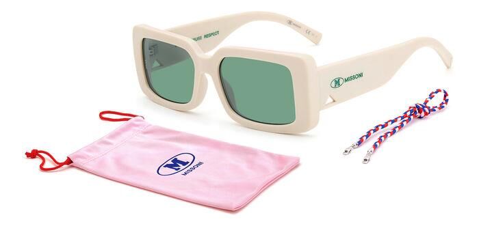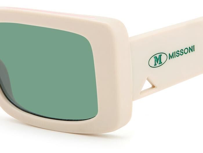 Kusursuz M Missoni tavrıyla renkli ve ayırt edici: Color & Patterns gözlük koleksiyonu, ön veya şakaklarda batik efektli bir dizi opak ve şeffaf asetat çerçeveyi günceller. Cesur kare bir silüetle öne çıkan bu güneş gözlükleri, zikzak metal sap göbekleriyle zenginleştirildi. Metal logo plakası, zikzak lens detayları ve imzalı yarım zig zag uçları, görünümü gerçek M Missoni tarzında tamamlıyor.
